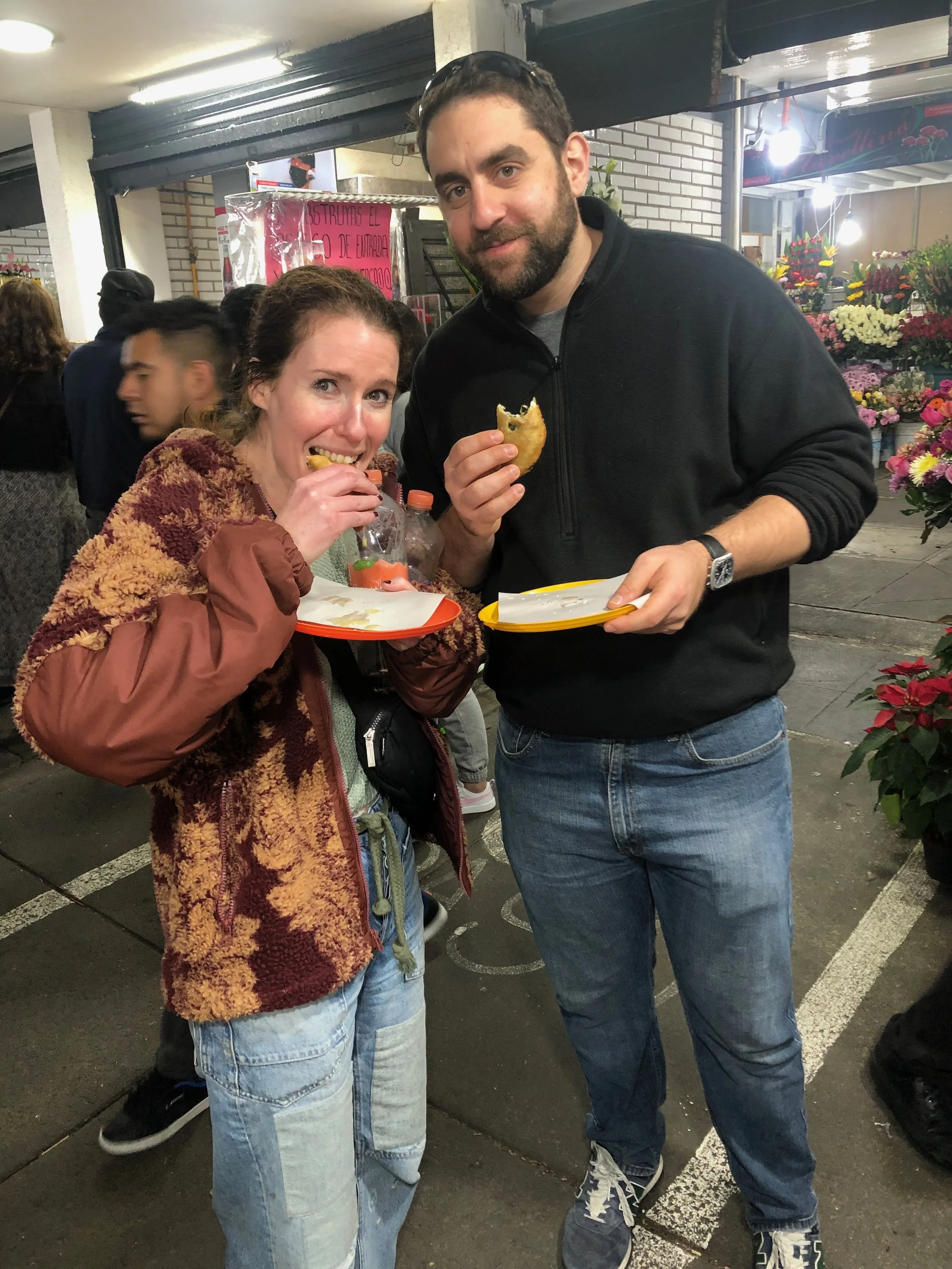 We visited the Museo Nacional de Antropologia during the day in order to work up a big appetite for our dinner plans. Months before our trip we booked a Mexico City street food walking tour through Eat Like a Local Mexico. Our guide Carla showed us around CDMX and took us to the best street food spots the city has to offer. We tried cemitas, traditional al pastor tacos, empanadas, churros and stopped for a pulque tasting. Every time we stopped at a new food cart we watched in awe as the cooks cut pastor from rotating spits or seamlessly pulled crispy tortillas from hot vats of oil. Every cart smelled better than the last and we devoured everything Carla put in front of us. One of our stops was at a food cart that had a variety of traditional tacos to offer and Jon, who is always willing to try anything, was brave enough to try an eyeball taco while I took a video. If you’re planning a trip to Mexico City, we highly recommend booking a food tour with Eat Like a Local Mexico. Not only do they know the best places to eat in the city but they give back to the community and help fund career training for young girls.